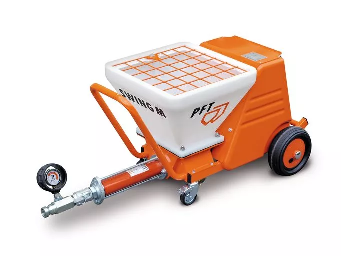 Feed pumps take over the transport of materials to the processing site on the construction site. The feed pumps from PFT are suitable for the processing of all pumpable ready-mixed dry mortars based on lime / cement as well as for wet products, pasty compounds and liquid media. With the SWING PFT family, PFT meets a wide range of requirements. The PFT SWING M FC-230V is the smallest model in the series. The pump is operated with alternating current and has an electronic 1.5 kW direct drive. The delivery rate is infinitely variable. Thin, pumpable and solvent-free materials (bucket goods) up to a maximum grain size of 3 mm can be pumped, pressed and sprayed. The compact PFT SWING M FC-230V fits into every station wagon without dismantling.